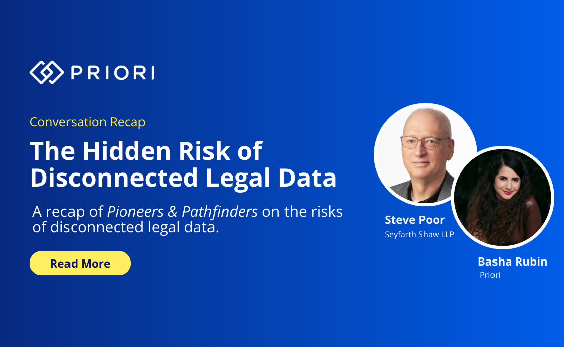 Priori CEO and Co-Founder Basha Rubin recently joined Steve Poor on the  Pioneers and Pathfinders podcast to discuss how legal departments are navigating AI, outside counsel governance, and the growing complexity of legal data. Below are our team’s key takeaways from the conversation.